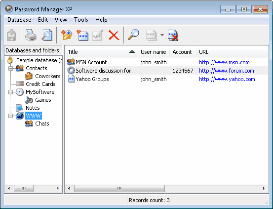 這個口令保護程式允許你儲存註冊碼,口令,PIN,信用卡卡號和他們的存取碼,和任何其他保密的資訊。你能夠創建被加密的資料庫,每一個以它的自己的訪問口令。